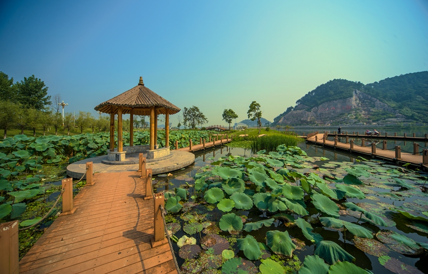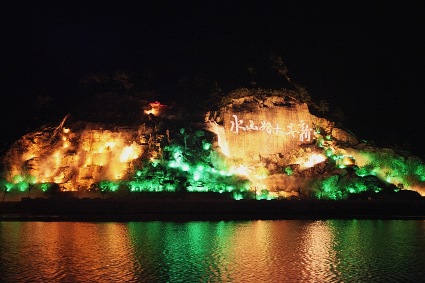 遠(yuǎn)處的山九龍山臨江而立,由于過去開山采石,造成朝向江面的山體形成大片裸露巖壁,已成為一處地質(zhì)災(zāi)害點(diǎn)。政府就結(jié)合地質(zhì)災(zāi)害治理,因地制宜,變廢為寶,將其打造成大型塑山文化景觀工程。在其最大的一個(gè)斷面上雕刻徽州歷史名人朱熹的手書“新安大好山水”,另一斷面上雕刻“新安畫派名家題壁”,將自明清以來原籍徽州的23位新安畫派名家手書題名匯集起來鐫刻于此,以示后人景仰。沿著崖壁邊緣山體上修建登山步道,在摩崖石刻前設(shè)置觀景平臺(tái),游人可由遠(yuǎn)而近參觀。同時(shí),在崖壁配置以相應(yīng)的亮化,無論是白天,還是夜晚,都能觀賞到這一文化景觀。