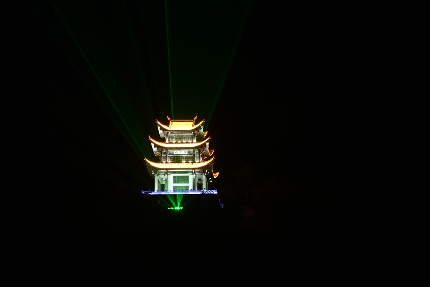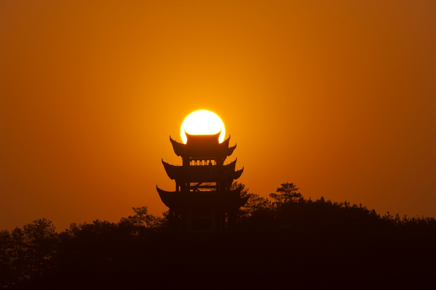 眼前這座山叫做尤溪山(又稱太陽山),山上大家可以看下有一座閣,叫孫王閣,這里有一個典故,相傳孫權之子(三子)南陽王孫和長眠于此。為深入挖掘其歷史文化內涵,在山頂建閣一座,取名孫王閣。閣共三層,高24米,建筑面積740平方米。建三層主要警示三國梟雄紛爭、百姓疾苦的風云歲月。沿山體修建登山游道,游人可登臨山閣,既可憑吊慨嘆,也可遠眺兩岸青山、山城美景。